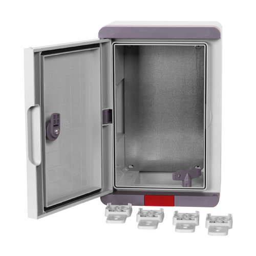 Confectionata din ABS gri si usa mata, permite realizarea conexiunilor precum si montarea unor echipamente in mediul exterior. Montare aparenta cu ajutorul clemelor incluse.