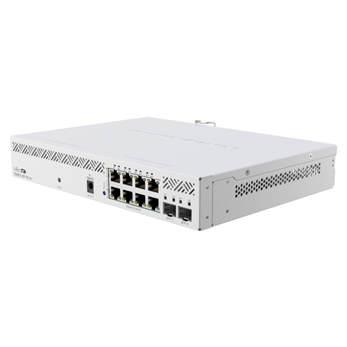 CSS610-8P-2S+IN de la MikroTik este un switch compact si accesibil, ideal pentru diverse configuratii, de la retele pentru casa la birouri mici, hoteluri sau call center. Dispune de 8 porturi Ethernet de 1 Gigabit cu suport PoE-OUT (802.3af/at), oferind o putere totala de 140 W, dar si 2 porturi SFP+ pana la 10 Gigabit.